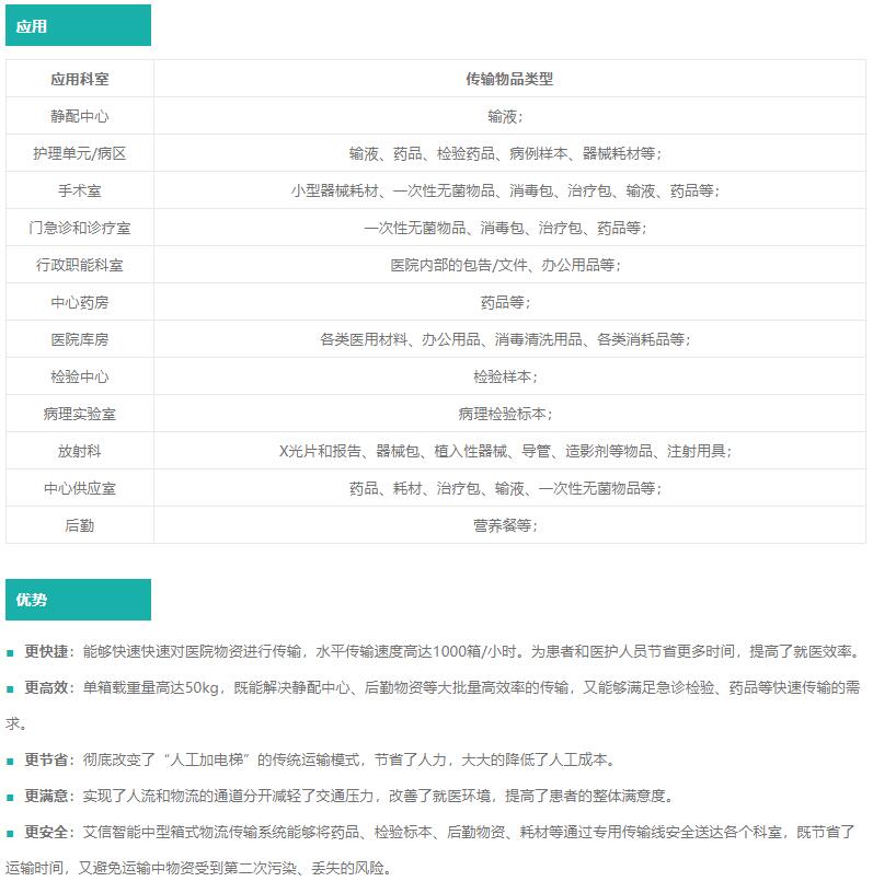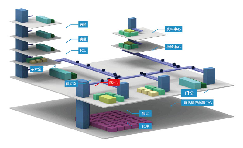 醫院智能(néng)中型物流傳輸系統,通過(guò)搭建院内自動傳輸線,以周轉箱爲載體,實現全院物資的自動化傳輸。系統傳輸範圍涵蓋醫院大部分物品,徹底改變了傳統的推車加人力的運輸方式,同時彌補了其他院内小型物流傳輸能(néng)力不足的問題,開(kāi)創了院内物流自動化的新模式。