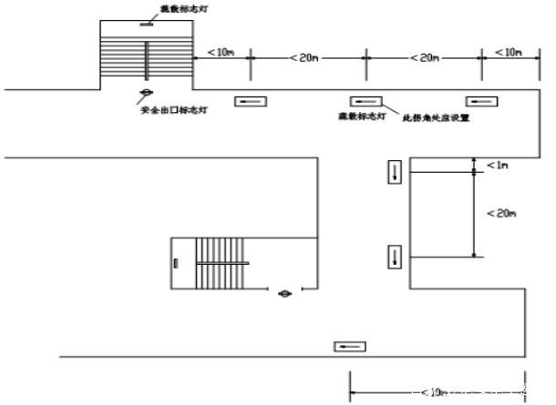 5. 疏散走道(dào)上的疏散指示标志安裝間距不應大于20.0 m;對(duì)于袋形走道(dào),不應大于10.0 m;在走道(dào)轉角區,不應大于1.0 m。